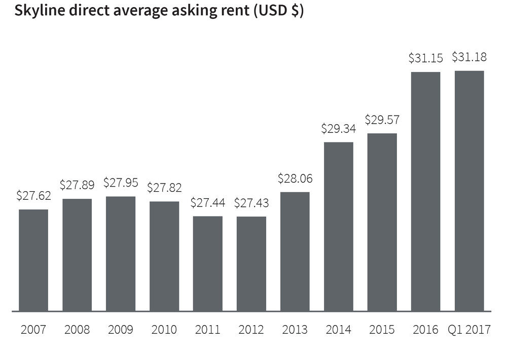Skyscraper rent is also some of the cheapest in America. In Philadelphia, the average asking rent per square foot is $31.18. In San Fransisco, rent is more than doubled at $76.11 per square feet. Curbed points out that that’s even cheaper than New York’s $87.90 and Washington’s $83.09. With low vacancy and all kinds of new construction coming down the pipeline, it’s about to be a great time to be a landlord in Philadelphia, JLL notes.